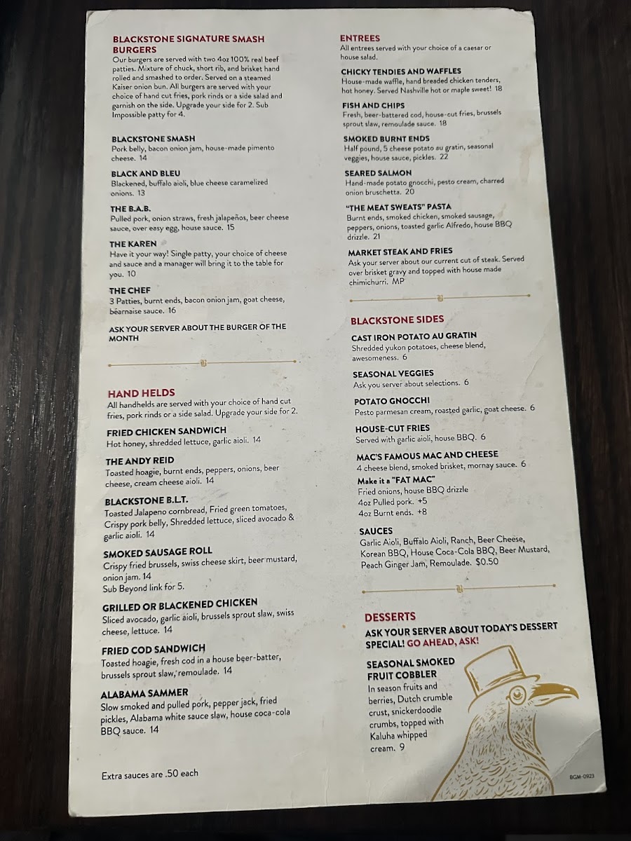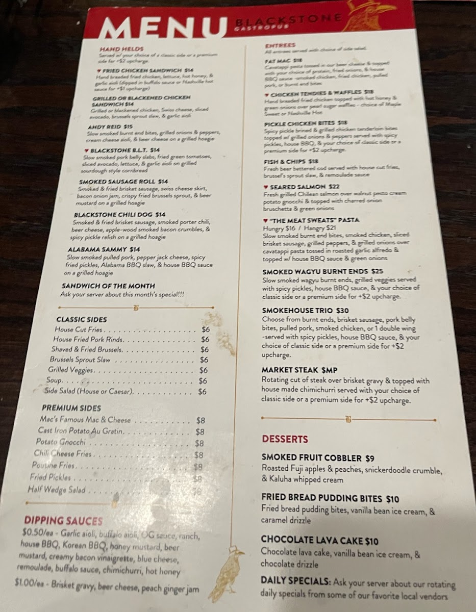 Blackstone Gastropub Menu